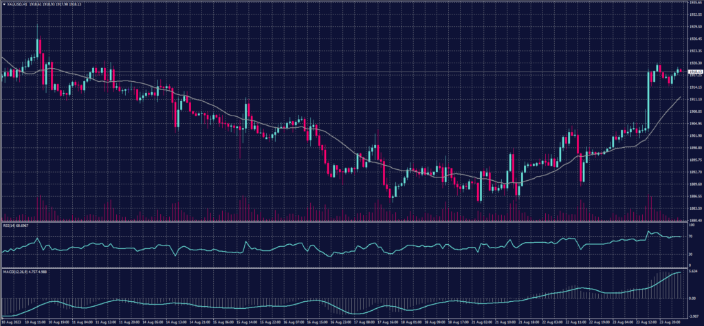 وعند التسوية، ارتفع سعر الذهب في السوق الفورية إلى 1919 دولار للأونصة.