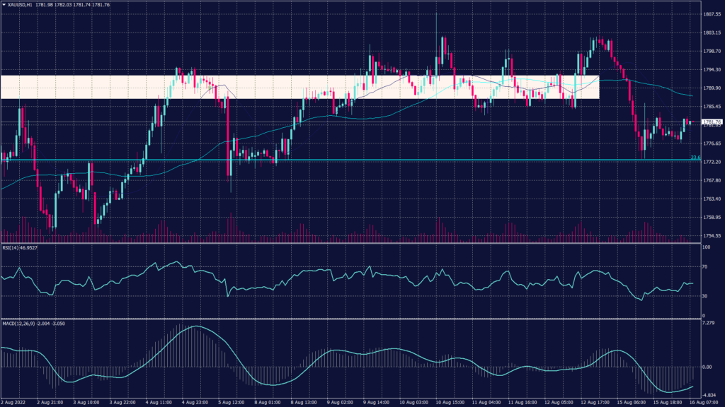 بقي سعر الذهب في التداولات الفورية ملتزماً بقناة الاتجاه الهبوطي على الرسم البياني اليومي حيث تراجعت أسعار الذهب بعد أن وصلت إلى مستوى المقاومة عند 1,800. في الوقت نفسه، يظهر الرسم البياني لكل ساعة دعماً عند 1,770 على الرغم من عمليات البيع المكثفة. أيضاً على الرسم البياني لكل ساعة، تظهر المؤشرات الفنية إشارات أفقية وتردد.