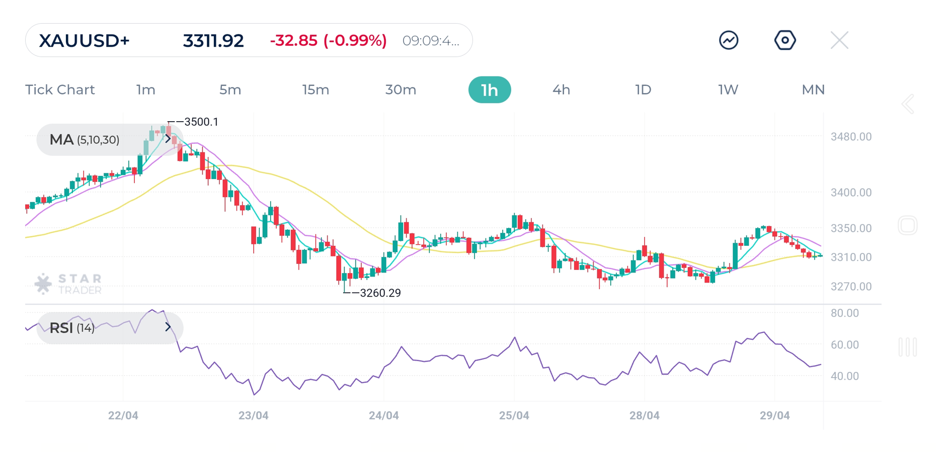Gold prices show fluctuations with conflicting fundamentals. The precious metal is trading sideways with the moving averages giving no clear signal. The Relative Strength Index is at neutral levels. A crossover of MA(5) and MA(10) below MA(30) could indicate further declines.