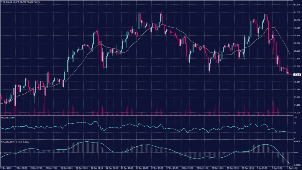 Oil prices declined during the early trades confirming the weak start to 2023 amid increased fears of a looming recession.