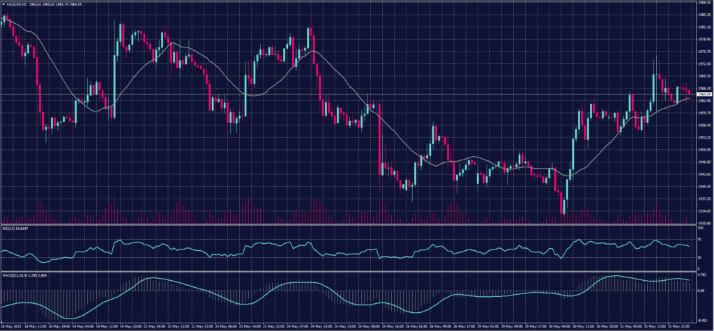Gold rose yesterday, Wednesday, supported by a decline in Treasury bond yields. However, the dollar’s strength, expectations of interest rate hikes, and optimism regarding the US debt ceiling agreement are causing gold to head for its first monthly decline in three months.