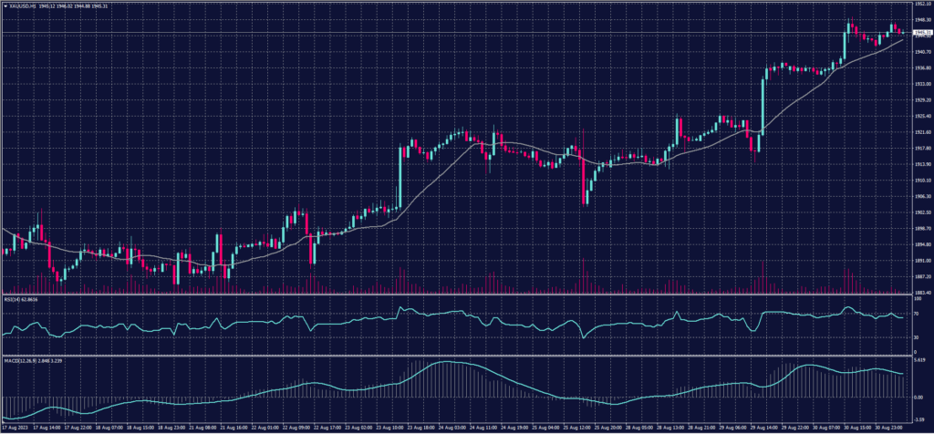 The spot price of gold increased by 0.4% to $1943.92 per ounce, after reaching its highest levels since August 2nd earlier in the session. The settlement of US gold futures rose by 0.4% to $1973.00.