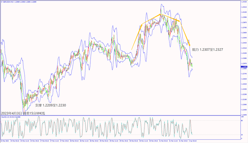 今天(3日)日本央行公布企业对未来三年通胀率预测将同比增长2.3%利好日元,美日若冲不过小时布林带上轨线133.47,建议可短空操作。预期今天欧元区公布制造业数据不佳,欧美冲不过小时布林带中轨1.0834,建议可短空操作。预期今天美国公布经济数据大都利好,镑美一旦跌破10日均线1.2294,建议可短空操作。