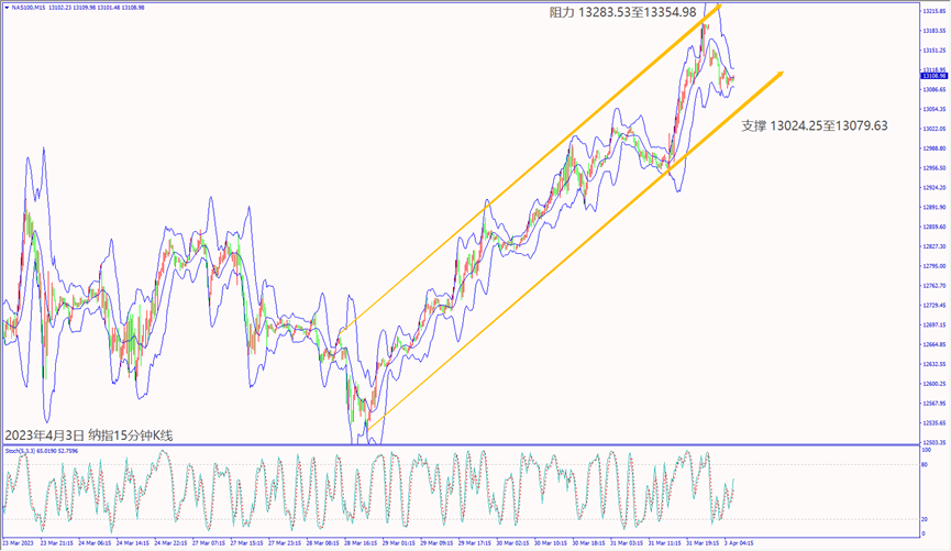 上周五(31日)美国公布PCE物价和预期通胀率下降利淡加息,带动道琼斯和纳指皆涨超1%。预期今天(3日)欧元区公布制造业数据大都不佳,德指一旦跌破小时布林带下轨线15,608,建议可短空操作。预期今天美国公布经济数据大都利好,纳指若守住小时布林带下轨线13,058,建议可短多操作。
