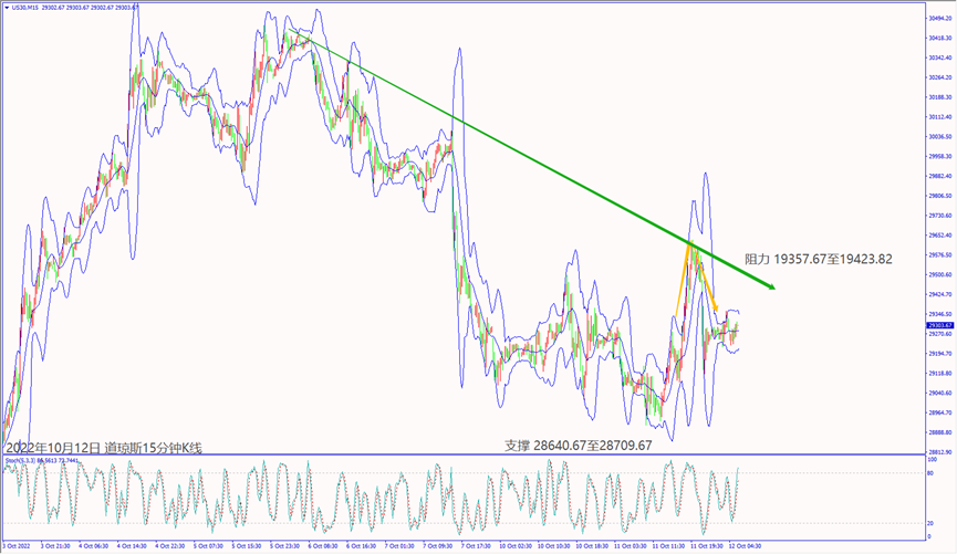 昨天(11日)美联储梅斯特预期持续加息且2023年不会降息,造成道琼斯和纳指从当日高点反转下跌超250点。预期今天英国公布经济数据好坏参半,以及欧洲央行行长拉加德重申10月维持加息,德指冲不过小时布林带中轨12,173,建议可短空操作。预期今天美国公布PPI数据攀升,以及预期周四(13日)清晨美联储货币会议纪要表示持续加息抑制通胀,道琼斯冲不过5日均线29,401,建议可短空操作。