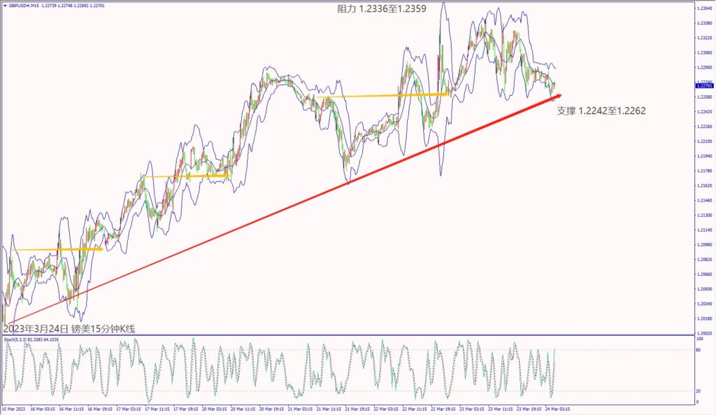 昨天(23日)清晨美联储经济预测调降今明两年GDP增长,亚洲市场抛售美元造成指数下跌约65个点,拖累美日下跌约百点,带动欧美和镑美皆涨逾70个点。瑞信央行利率决议宣布加息2码但对经济增长示警,造成欧美和镑美皆下跌,推升美元指数重回102.00关口。晚间英国央行宣布加息1码如市场预期,欧美和镑美一度反弹。市场担忧瑞信AT1债券恐冲击经济,造成欧美和镑美扩大下跌超80个点,推升美元指数涨约75个点,带动美加逆势涨约百点。