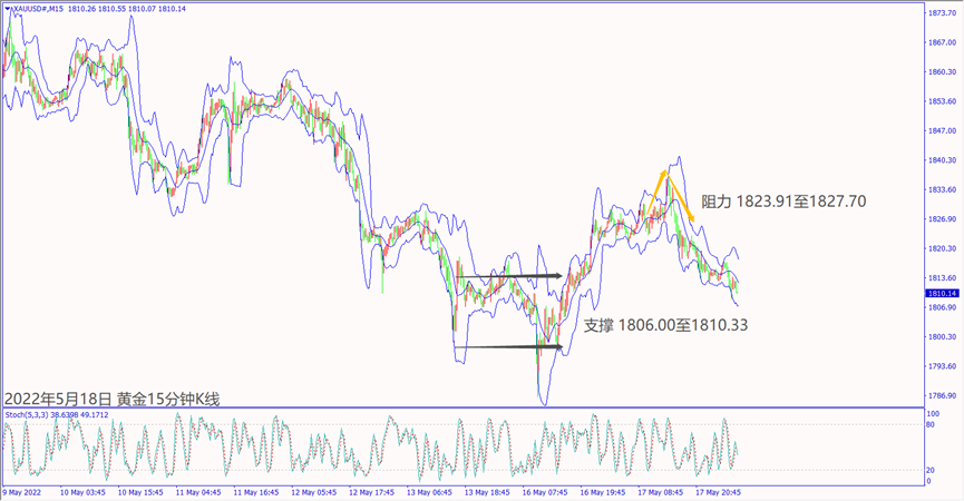 周二(17日)受到美元指数大跌影响,黄金价格从早上低点上涨约15美元。晚间美联储布拉德和主席鲍威尔表示加息抑制通胀,造成黄金价格回落至1810关口上方整理。