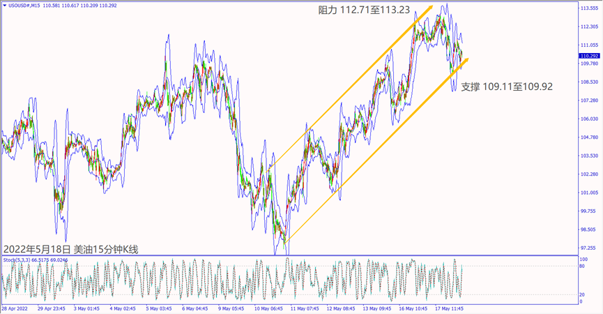 昨天(17日)英国和欧元区经济数据利好,德指大涨带动美国股指皆涨逾1%。晚间美国公布经济数据好坏参半,道琼斯和纳指出现200点震荡。受到欧美股指上涨影响,美油价格一度拉高至113.00关口。俄罗斯外长拉夫罗夫改口称芬兰和瑞典加入北约其实没有太大区别,因为他们长期参加北约的军事演习,造成美油价格逆势下跌。晚间俄罗斯总统普京表示石油的收入正在上升,暗指欧洲还没有禁止进口俄国石油,造成美油扩大下跌超3%。
