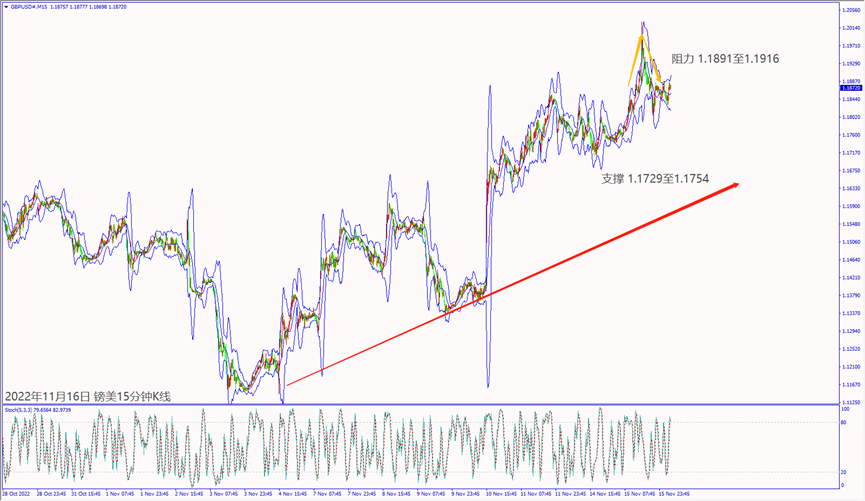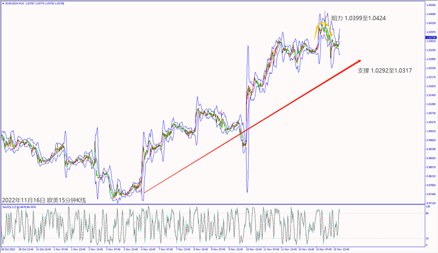 昨天(15日)欧元区公布经济数据大都利好,德国智库ZEW表示经济前景仍然明显是负面的,造成德指出现1%震荡。晚间美国公布制造业数据利好,带动道琼斯和纳指扩大涨逾1%。多位美联储官员重申加息抑制通胀,利淡道琼斯和纳指反转跌近2%。IEA预期2023年石油供给大于市场需求,利淡美油价格一度掼破84.00关口。G20宣布俄罗斯必须赔款给乌克兰,引发俄罗斯怒火扩大炮火袭击乌克兰,市场避险资金买入美油多仓推升股价逆势上涨近5%,尾盘回落至86美元附近整理。
