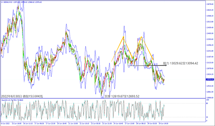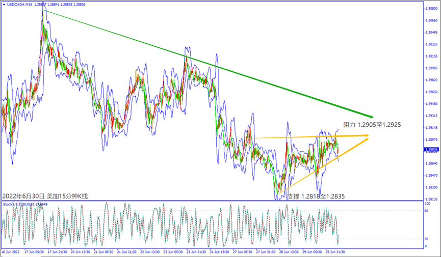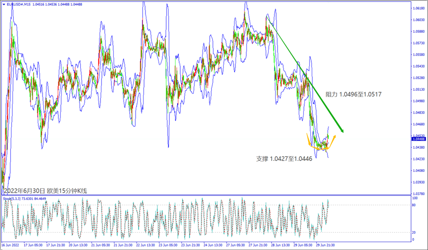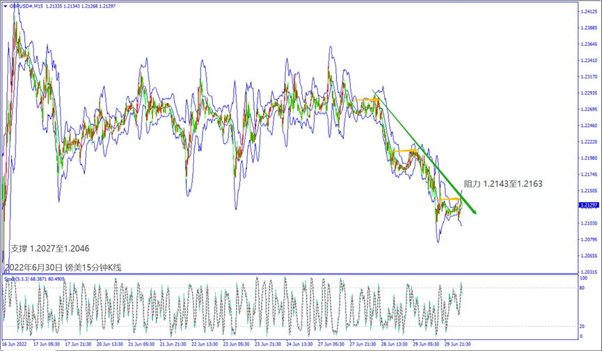 昨天(29日)受到拉加德称通胀影响经济造成欧美下跌,但欧元区公布工业和经济景气指数利好,带动欧美反弹收复当日跌势。苏格兰首席大臣称苏格兰举行独立公投,造成镑美出现下跌。晚间美联储主席鲍威尔称加息抑制通胀,不一定会造成经济衰退的乐观程度好于欧洲和英国央行行长,利好美元指数上涨约70个点,带动美日和美加皆扩大上涨逾55个点,也让欧美和镑美反转大跌近百点。