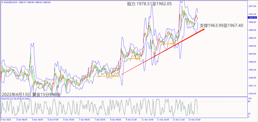 昨天(12日)美国公布CPI数据持续攀升,市场担忧冲击美国经济造成股指出现大跌,也再度推升黄金价格重回1970关口。预期今天(13日)加拿大利率决议偏向鹰派恐造成美元下跌,黄金价格守住小时布林带下轨线1961美元,建议可偏多操作。