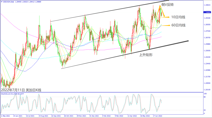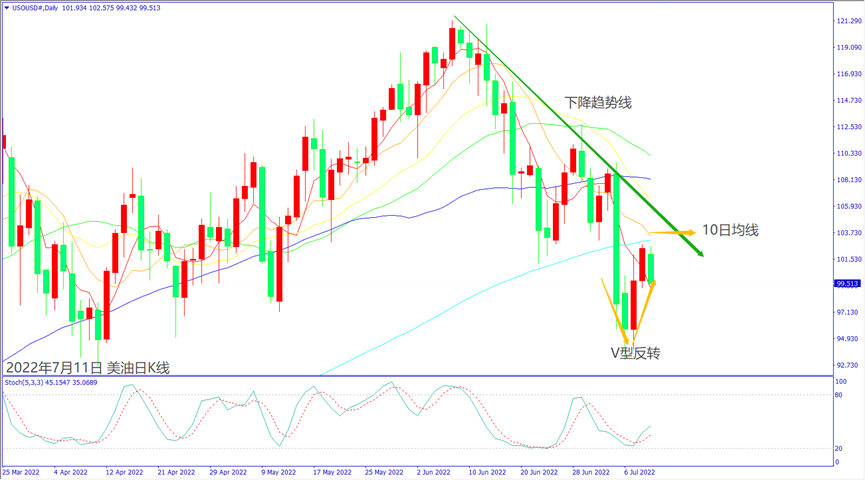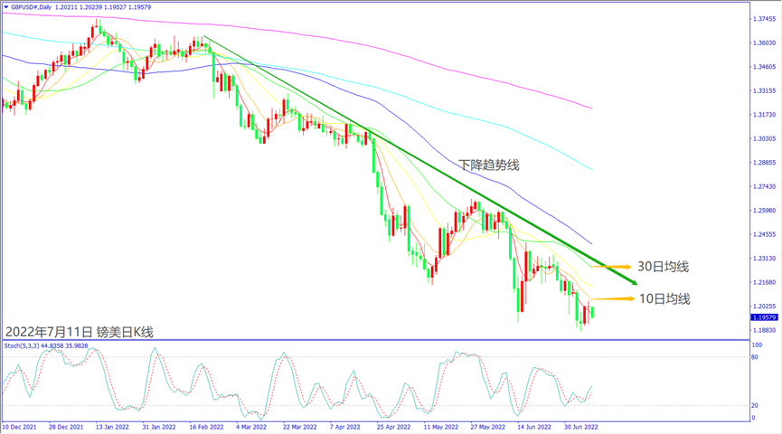 上周二(5日)瑞典和芬兰宣布签署协议书加入北约,引发市场对欧洲地区地缘政治问题,造成欧美暴跌创近20年新低,也让镑美大跌逾210个点创1年8个月新低价格。上周四(7日)清晨美联储货币会议纪要,预测7月维持加息,以及上周五(8日)美国公布非农就业数据利好,美元指数扩大上涨超300个点,带动美加大涨约240个点,也让欧美扩大下跌约280个点。上周四(7日)英国众多官员宣布辞职来表达对首相约翰逊的不满,因此当天晚上英国首相正式宣布辞任官位,市场乐观英国经济向好让镑美意外大涨约120个点。