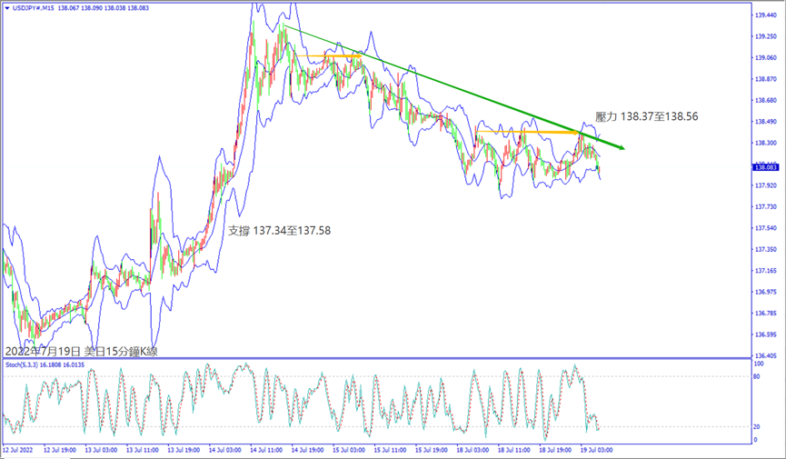 前天(17日)日本財務大臣表示關注外匯市場可能讓日元出現反彈,美日一旦跌破5日均線138.21,建議可短空操作。預期今天(19日)歐元區公佈CPI數據利好,歐美守住小時布林帶下軌線1.0118,建議可短多操作。預期週三(20日)清晨英國央行行長貝利重申加息抑制通脹,鎊美若守穩小時布林帶下軌線1.1908,建議可短多操作。