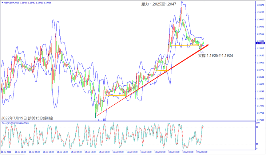 今天(19日)清晨美國眾議院通過支持瑞典和芬蘭加入美約,早上歐美和鎊美皆下跌約30個點。今天澳洲聯儲會議紀要表示將考慮提高25個或50個基點的可能性,帶動澳美上漲逾25個點。預期今天歐元區公佈CPI數據利好,有望帶動歐美上漲。