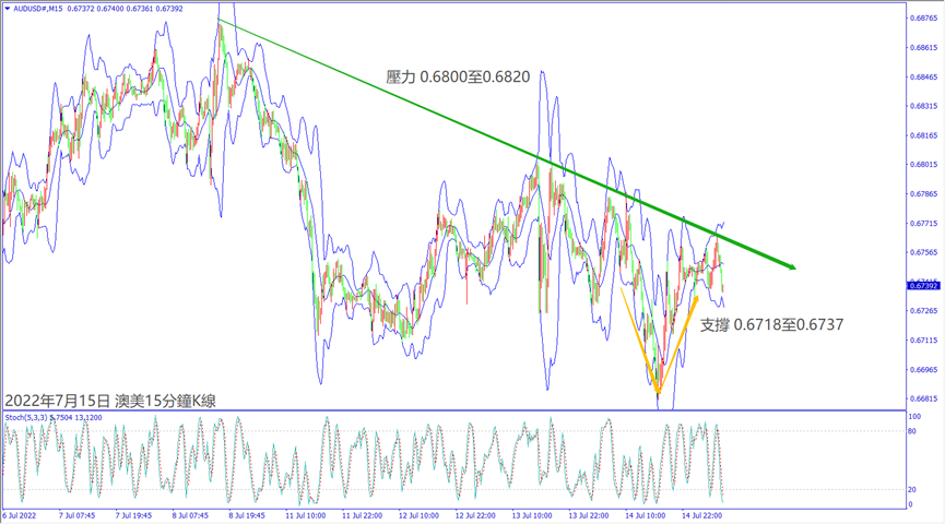 今天(15日)中部城市文尼察遭導彈襲擊,俄烏衝突影響全球經濟有望利好澳元,澳美一旦突破5日均線0.6750,建議可短多操作。預期今天歐元區公佈經濟數據不佳,歐美沖不過5日均線1.0036,建議可短空操作。預期今天美國公佈經濟數據大都不佳,鎊美守住小時布林帶下軌線1.1816,建議可短多操作。