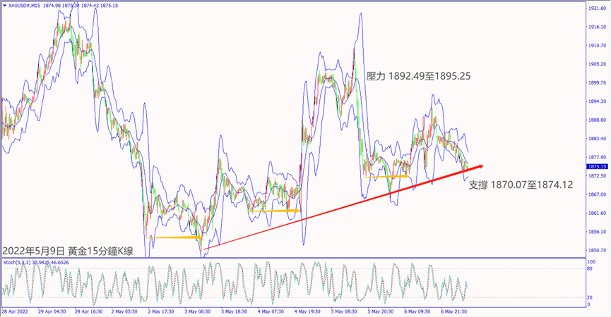 上週五(6日)受到美元指數一度大跌影響,帶動黃金價格衝高至1890關口。預期今天(9日)歐美公佈經濟數據大都不佳可能造成股指持續下跌,黃金價格守住5日均線1876美元,建議可偏多操作。