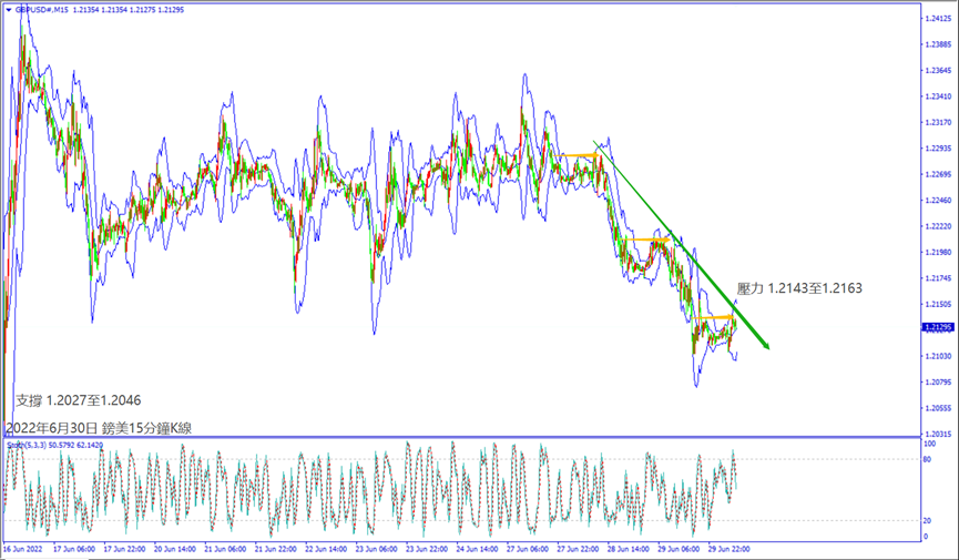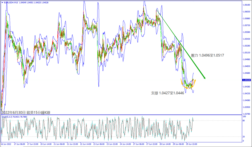 昨天(29日)受到拉加德稱通脹影響經濟造成歐美下跌,但歐元區公佈工業和經濟景氣指數利好,帶動歐美反彈收復當日跌勢。蘇格蘭首席大臣稱蘇格蘭舉行獨立公投,造成鎊美出現下跌。晚間美聯儲主席鮑威爾稱加息抑制通脹,不一定會造成經濟衰退的樂觀程度好於歐洲和英國央行行長,利好美元指數上漲約70個點,帶動美日和美加皆擴大上漲逾55個點,也讓歐美和鎊美反轉大跌近百點。