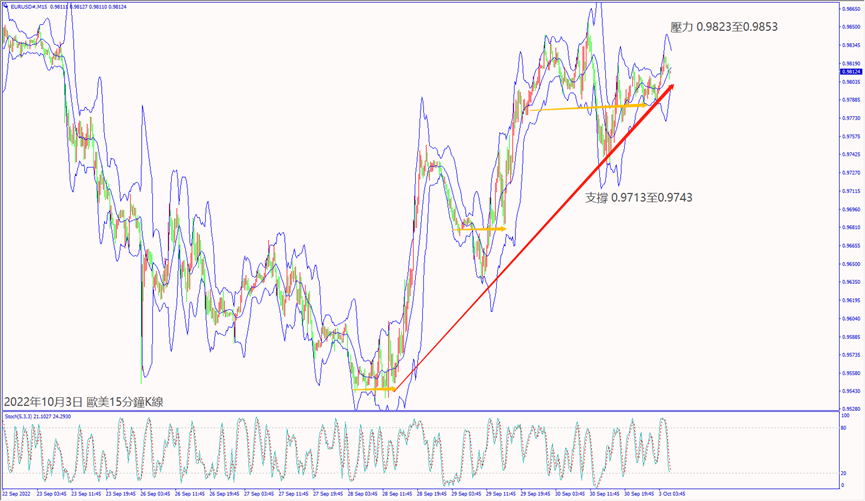 今天(3日) CME美聯儲觀察公佈11月加息75個基點概率出現下降,亞洲市場拋售美元一度造成指數下跌約45個點。日本央行貨幣政策會議摘要表示繼續實施寬鬆政策利好通脹穩定超過2%,也讓美日走勢獲得多方買盤支撐在114.70上方整理。預期今天歐元區各國外長會議討論節約能源使用恐利淡歐元,可能造成歐美和鎊美下跌。