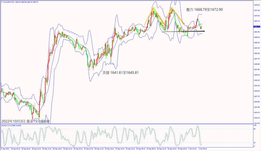上週五(30日)多位美聯儲官員預期持續加息直到通脹明顯下降利好美元上漲,也讓黃金價格從當日高點反轉下跌約15美元,尾盤守在1660美元附近整理。預期今天(3日)歐美公佈經濟數據利淡歐元和利好美元,黃金價格若跌破小時布林帶下軌線1659美元,建議可短空操作。