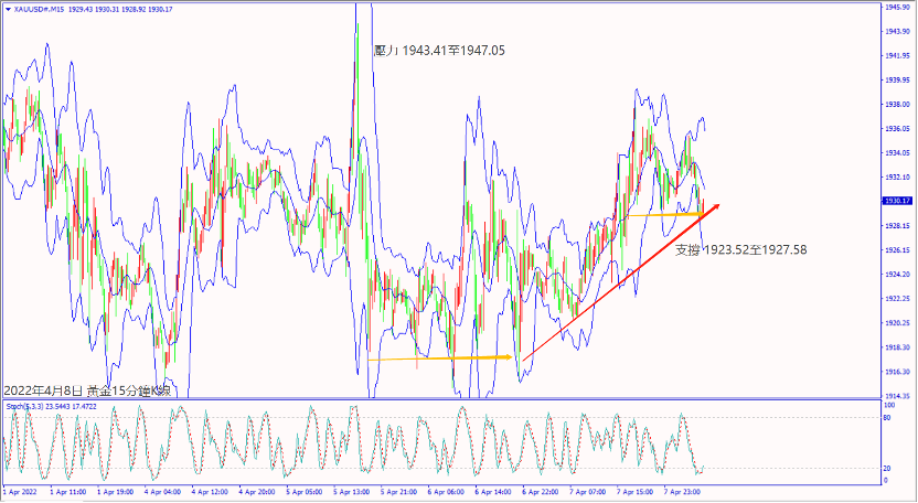 週四(7日)布查事件後歐美擴大對俄羅斯制裁,俄羅斯表示這是栽贓並且對烏東重啟炮火,避險資金推升黃金價格上漲約15美元。晚間美國公佈經濟數據利好美元上漲,也讓黃金回落至1930美元附近整理。