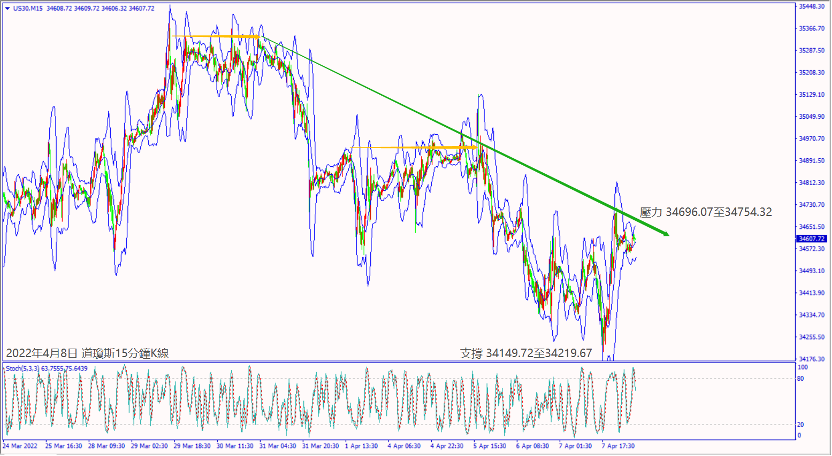 昨天(7日)美國公佈失業數據利好,帶動道瓊斯納指逆勢收陽。預期今天(8日)歐元區公佈當日新冠確診人數持續下降,德指一旦突破小時布林帶上軌線14,239,建議可短多操作。預期今天美國公佈經濟數據不佳,道瓊斯沖不過5日均線34,659,建議可偏空操作。
