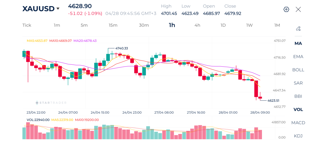 Xu hướng ngắn hạn vẫn nghiêng về giảm dưới mốc 4.655 USD, với áp lực bán chiếm ưu thế, trừ khi xuất hiện nhịp phục hồi mạnh đưa giá quay lại trên các đường trung bình động.