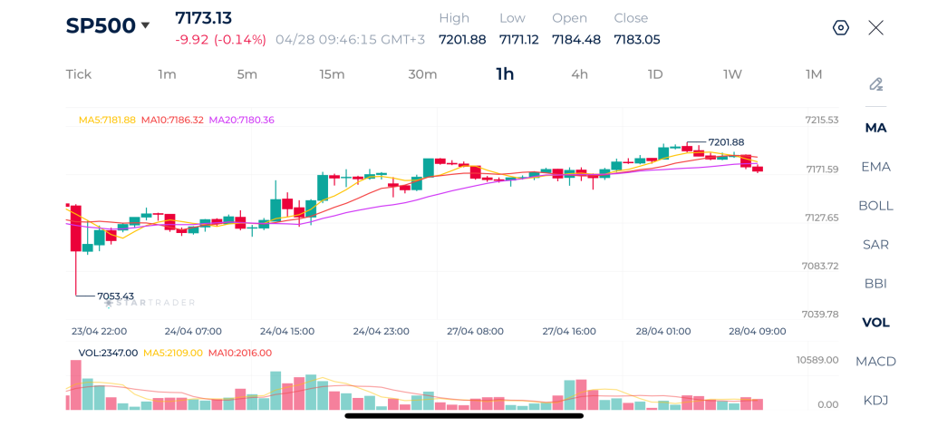 Biểu đồ S&P 500 khung 1 giờ