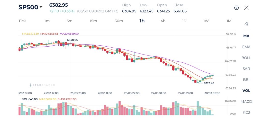 Chỉ số S&P 500 đang giao dịch quanh mức 6,383 trên khung thời gian 1 giờ và vẫn chịu áp lực giảm trong ngắn hạn.